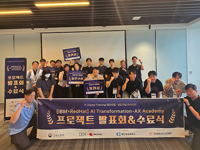 [IBM X RedHat] AI Transformation AX Academy 2기 프로젝트 발표회 및 수료식 안녕하세요. K-Digital Trainning 디지털 선도기업 아카데미[IBM x Red Hat] AI Transformation AX Academy 2기프로젝트 발표회 및 수료식이 있었습니다. - 일시 : 2025년 9월 17일 수요일- 장소 : IBM Korea (서울 영등포구 국제금융로 10 THREE IFC 6층) 감사합니다.