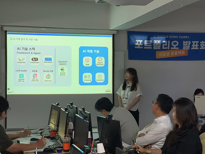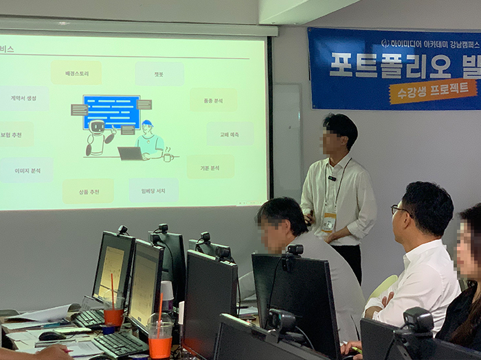 [강남] '심화_생성형 AI활용 인재양성' 부트캠프 과정 8기 프로젝트 발표회 안녕하세요.하이미디어 아카데미 강남캠퍼스에서'심화_생성형 AI활용 인재양성' 과정 8기 프로젝트 발표회가 있었습니다. 하이미디어 아카데미는 앞으로도 여러분의 취업을 위해 최선을 다하겠습니다. 감사합니다.