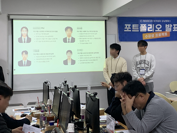 [강남] '심화_생성형 AI활용 인재양성' 부트캠프 과정 10기 프로젝트 발표회 안녕하세요.하이미디어 아카데미 강남캠퍼스에서'심화_생성형 AI활용 인재양성' 과정 10기 프로젝트 발표회가 있었습니다. 하이미디어 아카데미는 앞으로도 여러분의 취업을 위해 최선을 다하겠습니다. 감사합니다.