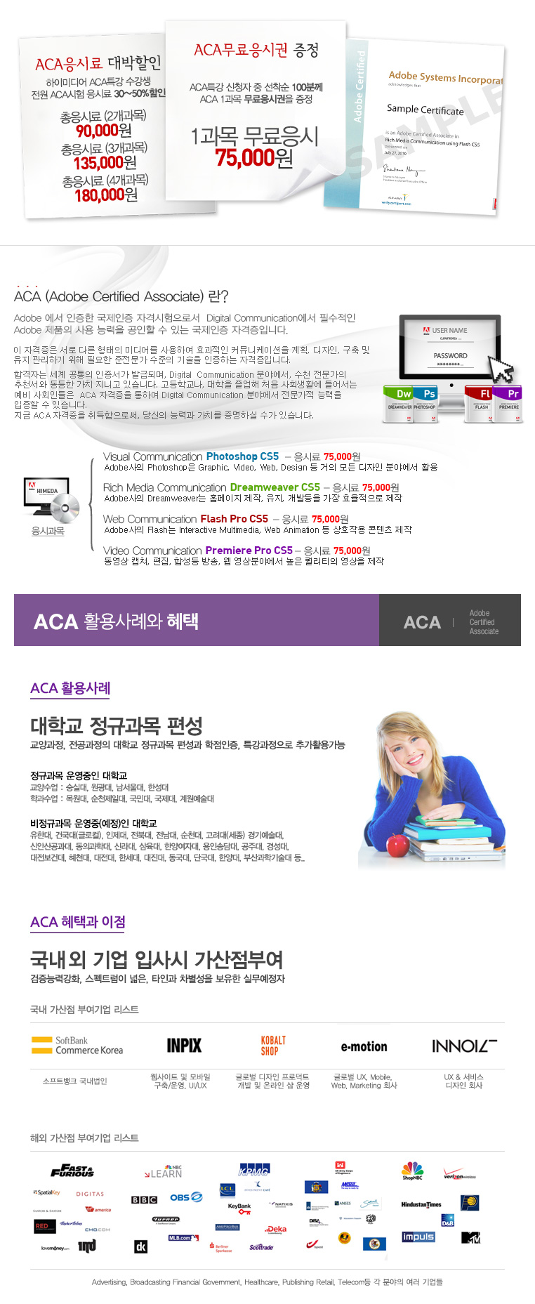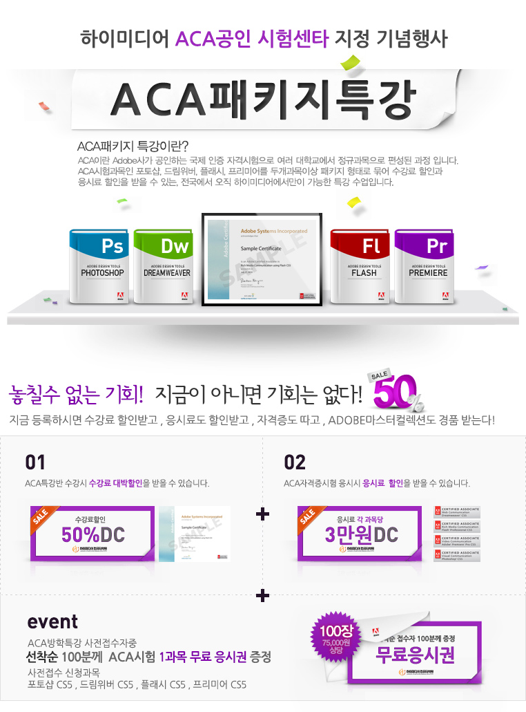 ACA공인 시험센터 지정 기념행사 수강료50%할인+응시료3만DC+ 선착순100분께 무료수강권 증정