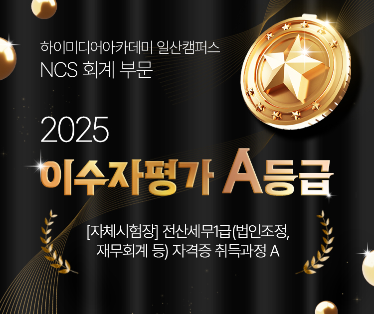 2025 이수자평가 A등급 획득 '[자체시험장] 전산세무1급(법인조정, 재무회계 등) 자격증 취득과정 A'