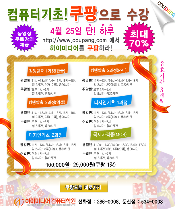 4월 25일! 단 하루 하이미디어컴퓨터학원을 쿠팡하자!!
