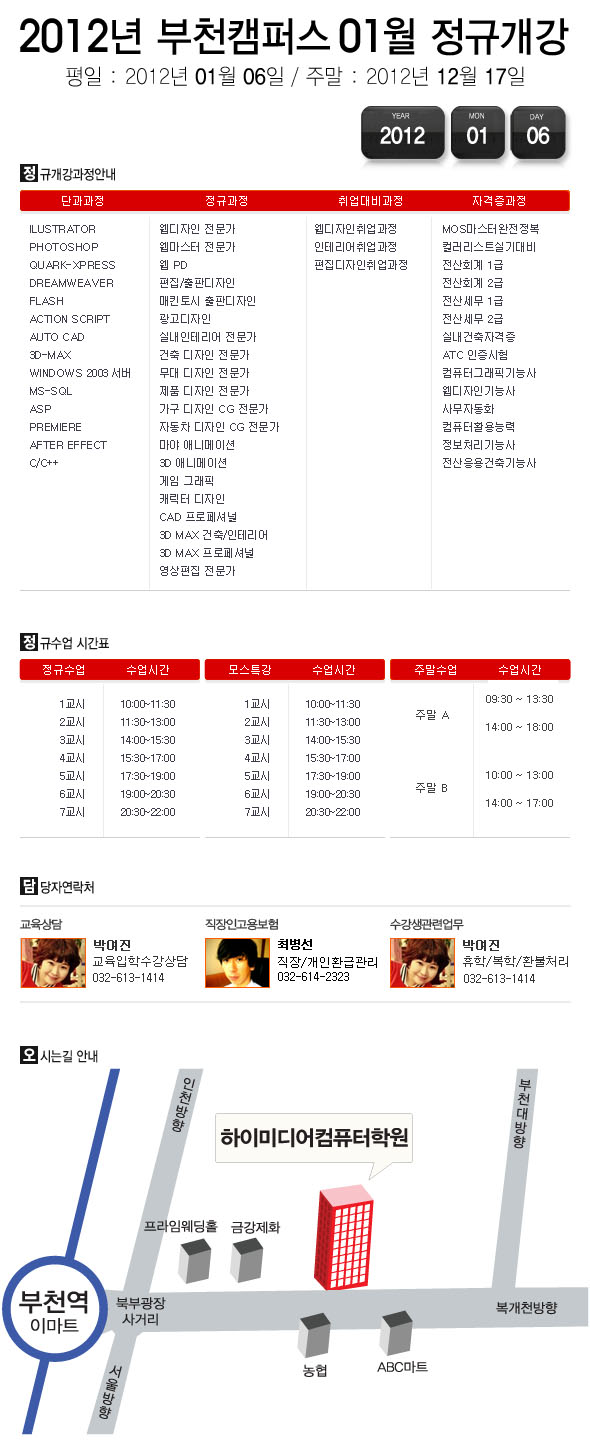 [정규개강] 2012년 01월 부천캠퍼스 개강안내