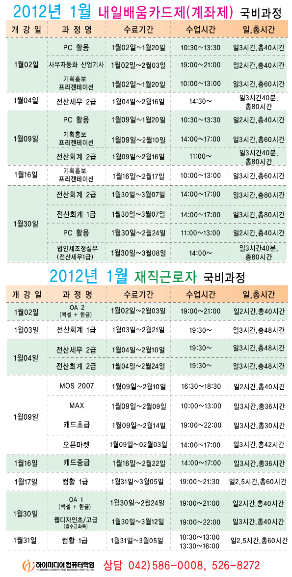 [정규개강]2012년 1월 개강일정입니다.(대전캠퍼스)
